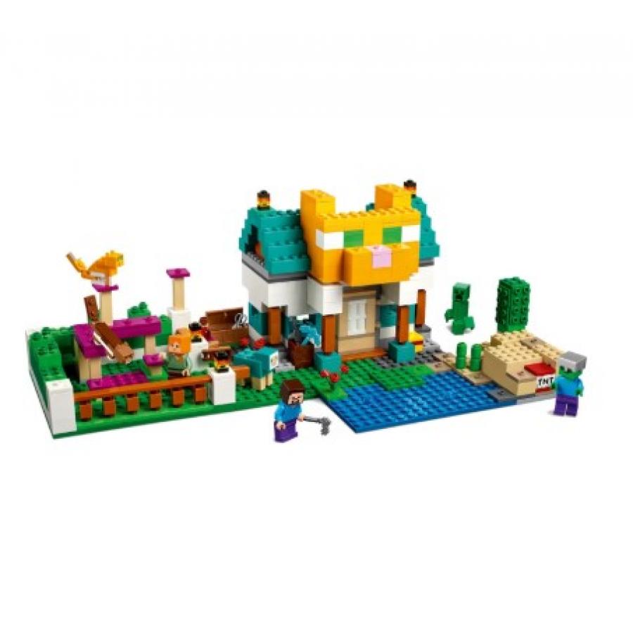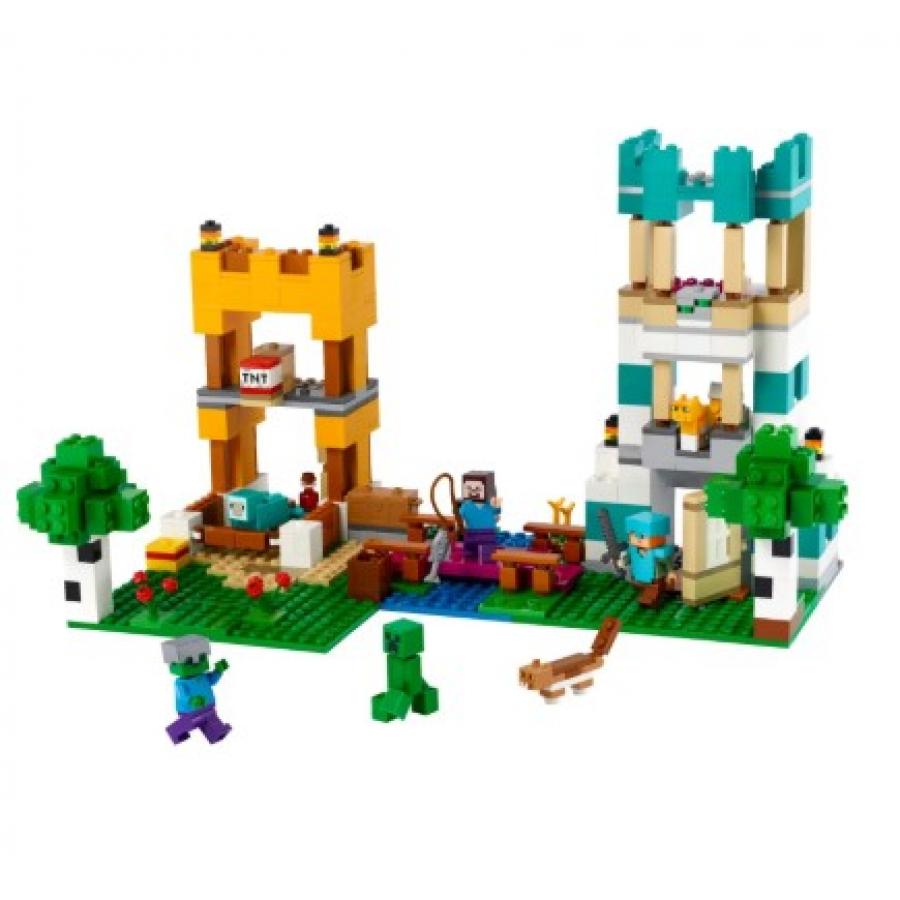 Το LEGO Minecraft The Crafting Box 4.0 προσφέρει 2 ξεχωριστά σετ παιχνιδιού και ατελείωτη διασκέδαση δωρεάν κατασκευής στα χέρια παικτών Minecraft ηλικίας 8 ετών και άνω. Αυτό το ατελείωτα ευέλικτο σετ παιχνιδιού προσφέρει 2 διαφορετικά σενάρια για να κατασκευάσουν τα παιδιά: τους Πύργους του Ποταμού, μια κατασκευή που μοιάζει με φρούριο και μπορεί να χρησιμοποιηθεί για άμυνα ενάντια σε μια επίθεση ζόμπι και Creeper ή το Cat Cottage, το οποίο αποτελείται από ένα μεγάλο σπίτι σε σχήμα γάτας με μια παιδική χαρά δίπλα του. Αυτές οι ξεχωριστές κατασκευές, μαζί με προτεινόμενα μοντέλα σχεδιασμένα για να εμπνεύσουν τη δημιουργικότητα των παιδιών και τις αμέτρητες κατασκευές που χτίζουν από τη δική τους φαντασία, κατοικούνται από εμβληματικές φιγούρες και όχλους από το παιχνίδι, συμπεριλαμβανομένων των Steve, Alex, ενός ζόμπι, Creeper, γάτες και πρόβατα. Μια σειρά από χαρακτηριστικά και λειτουργίες του Minecraft, συμπεριλαμβανομένης της έκρηξης TNT, προσθέτουν επιπλέον ρεαλισμό σε αυτό το επικό σετ παιχνιδιού.