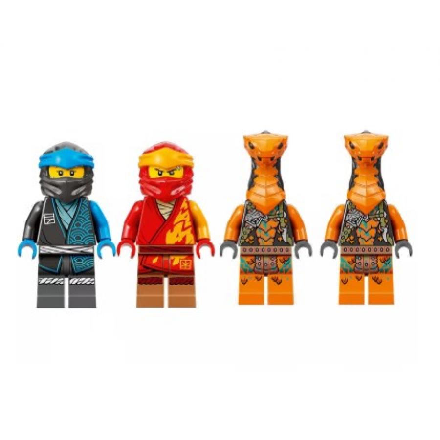 Μπες στη μάχη με τη Νία και τον Νίντζα Δράκο της εναντίον δύο ενοχλητικών πολεμιστών φιδιών! Αυτοί οι εχθροί προσπαθούν απεγνωσμένα να αρπάξουν το αυγό του δράκου, το οποίο προστατεύει ο Κάι σε έναν ναό νίντζα. Το Ύπουλο Φίδι είναι έτοιμο να αρχίσει την καταδίωξη με τη σούπερ γρήγορη μοτοσικλέτα του, ενώ ο Μηχανικός Κόμπρα είναι οπλισμένος με δόρυ και έτοιμος να εξαπολύσει τον πανίσχυρο καταπέλτη του εναντίον σου. Είναι σημαντικό να θριαμβεύσεις και να σώσεις την Πόλη του NINJAGO !