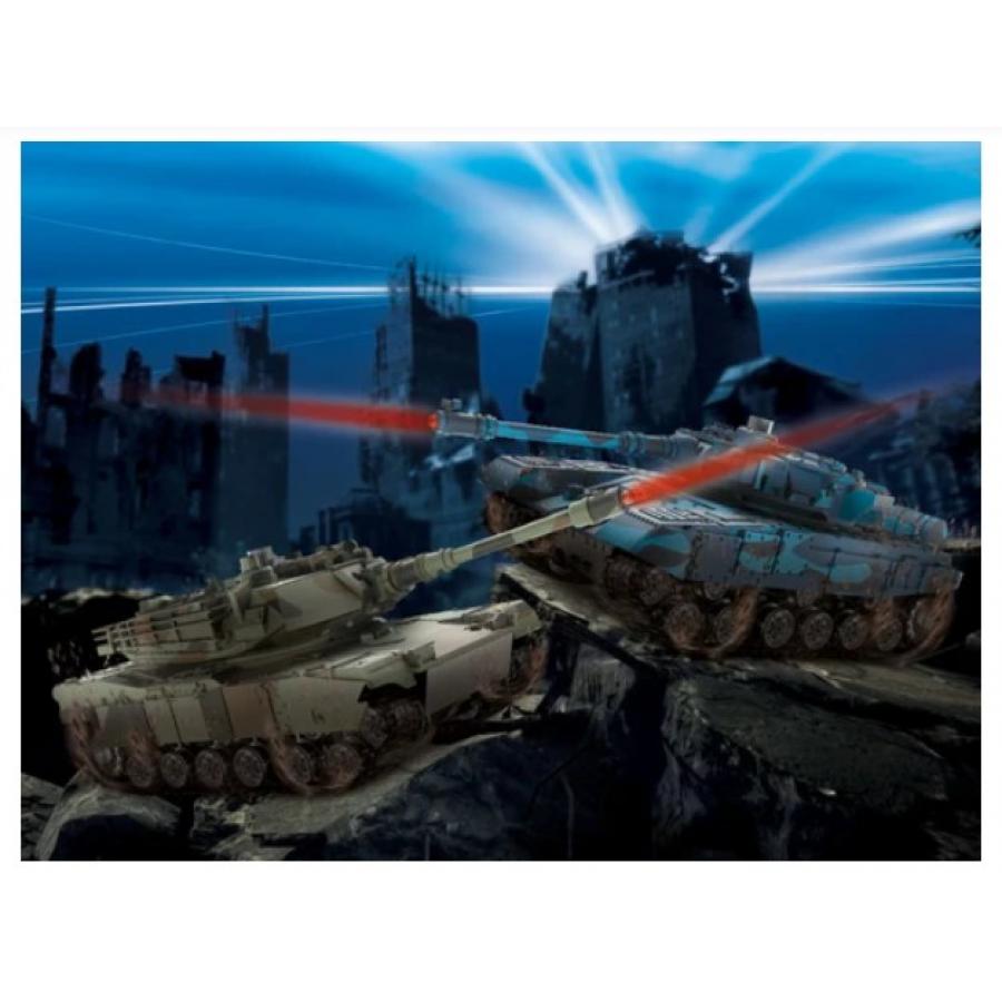 Το Σετ Άρμάτων Μάχης εγγυάται συναρπαστικές μάχες σε ανώμαλο έδαφος. Τα δύο άρματα μάχης σε κλίμακα 1:52 κινούνται σε πλήρως λειτουργικές ερπύστριες αρμάτων μάχης και διαθέτουν πυργίσκο που μπορεί να περιστραφεί κατά 180°. Το ενσωματωμένο υπέρυθρο πυροβόλο σας επιτρέπει να προσομοιώνετε μάχες. Όλες οι λειτουργίες μπορούν να ελεγχθούν χρησιμοποιώντας τα παρεχόμενα τηλεχειριστήρια 2,4 GHz. Τα ενσωματωμένα ηχητικά εφέ για τον κινητήρα και το πυροβόλο του άρματος μάχης κάνουν το παιχνίδι με αυτό το μοντέλο μια πραγματικά συναρπαστική εμπειρία. Και τα δύο μοντέλα είναι εξοπλισμένα με μια εναλλάξιμη μπαταρία ιόντων λιθίου που μπορεί να επαναφορτιστεί χρησιμοποιώντας τον παρεχόμενο φορτιστή USB.